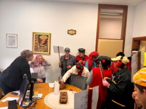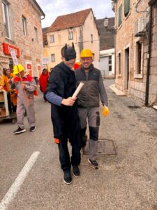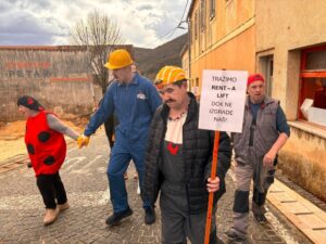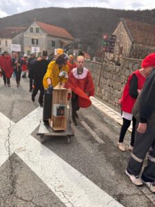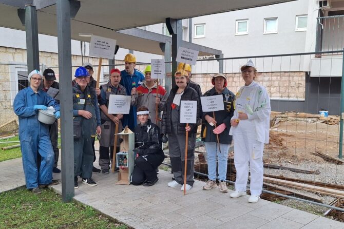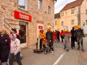 Ove godine se glavni motiv za maškare i uvijek tajanstvenog Krnju nametnuo sam od sebe. Poteškoće na koje nailazimo zbog kašnjenja radova na novom dizalu potaknule su kreativne ruke naše Branke i Milane da izrade dizalo koje će koristiti i Ninja kornjače. Vrijedni ˝radnici˝ u pratnji ostale namaškarane povorke obišli su grad, posjetili gradonačelnika i gradsku upravu, ured ravnateljice i ostale korisnike Centra. Uz glazbu i ples dobro su nam na kraju sjeli i vrlički uštipci.